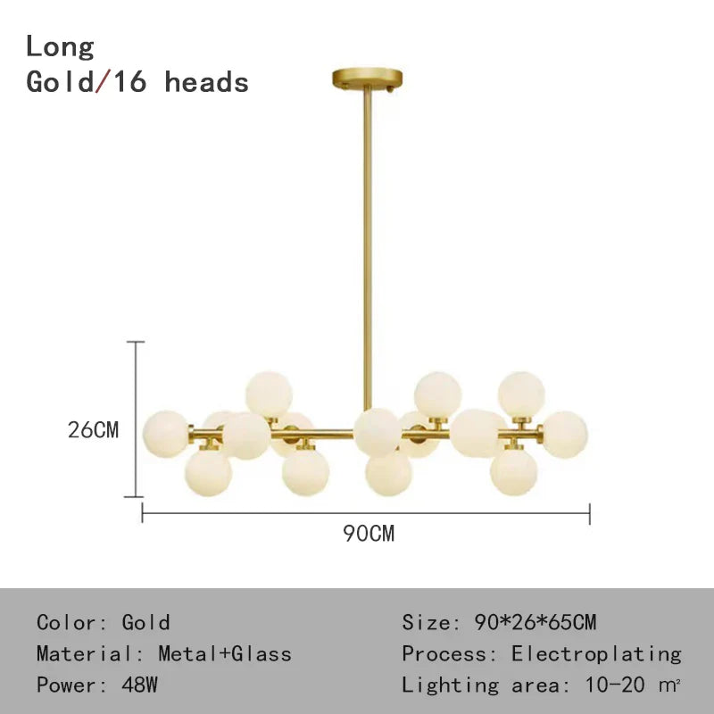 Dotée de boules de verre blanc immaculé, cette suspension est une solution d'éclairage polyvalente qui sublime l'ambiance de votre intérieur. Placée au-dessus d'une table à manger ou dans d'autres espaces, elle allie esthétique et fonctionnalité.