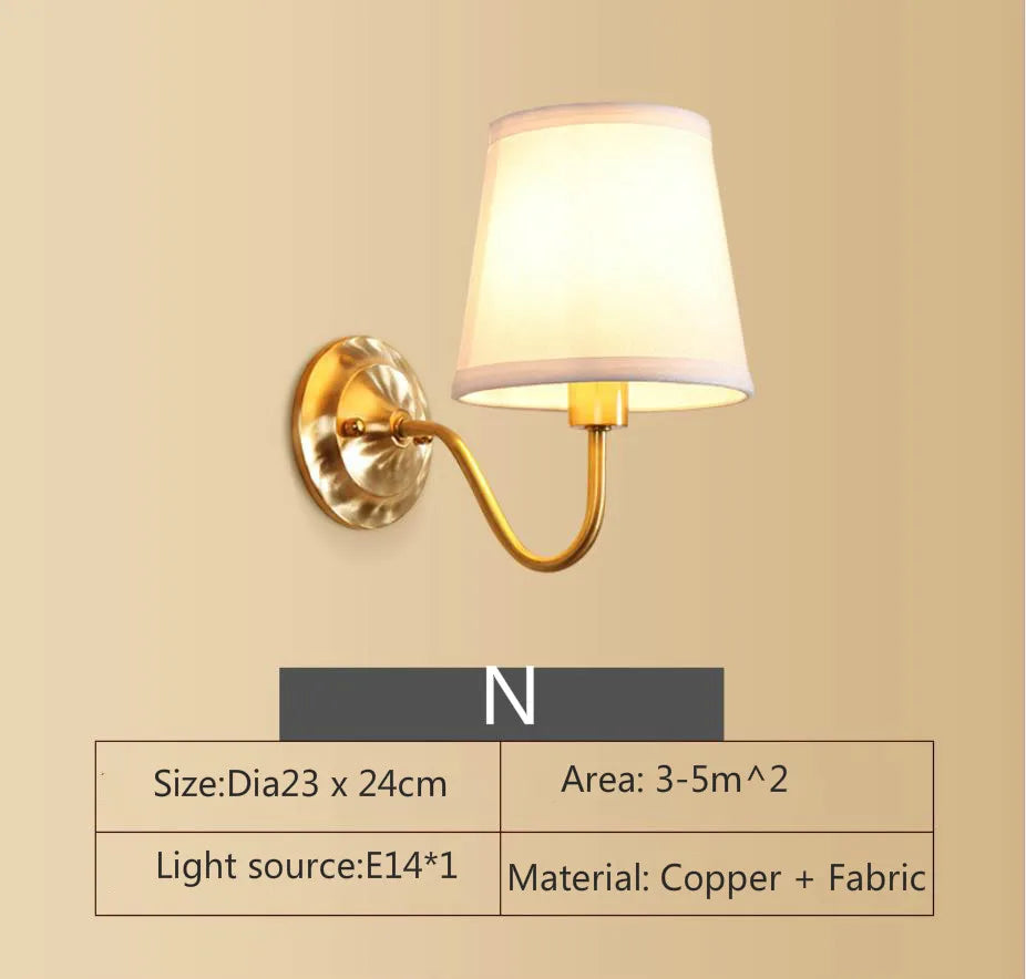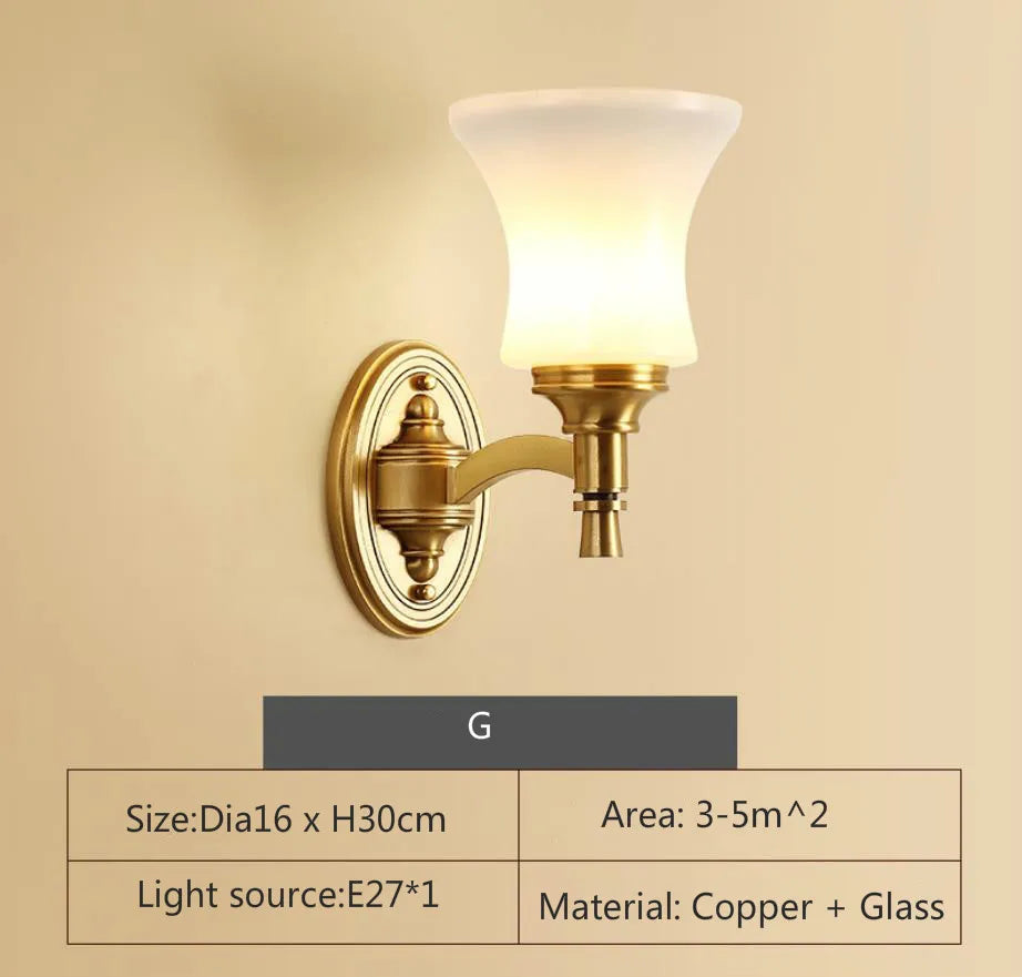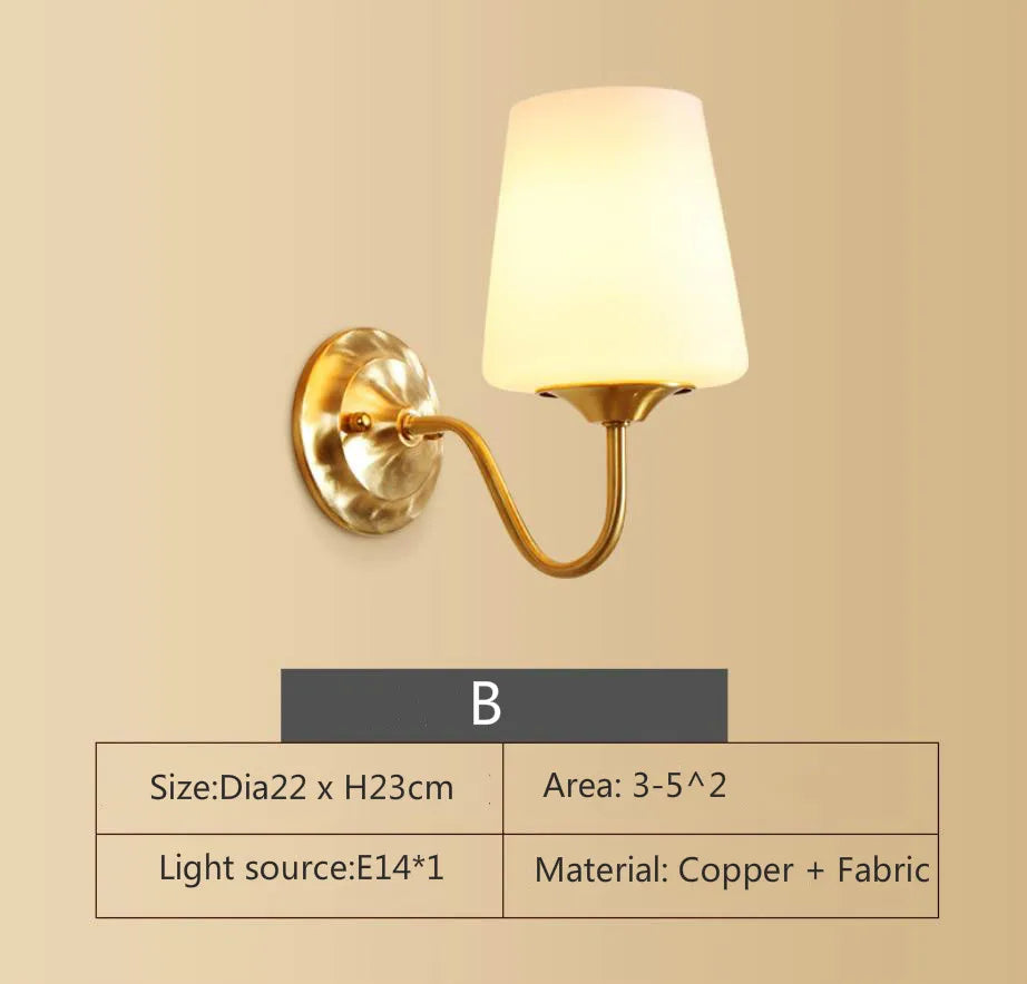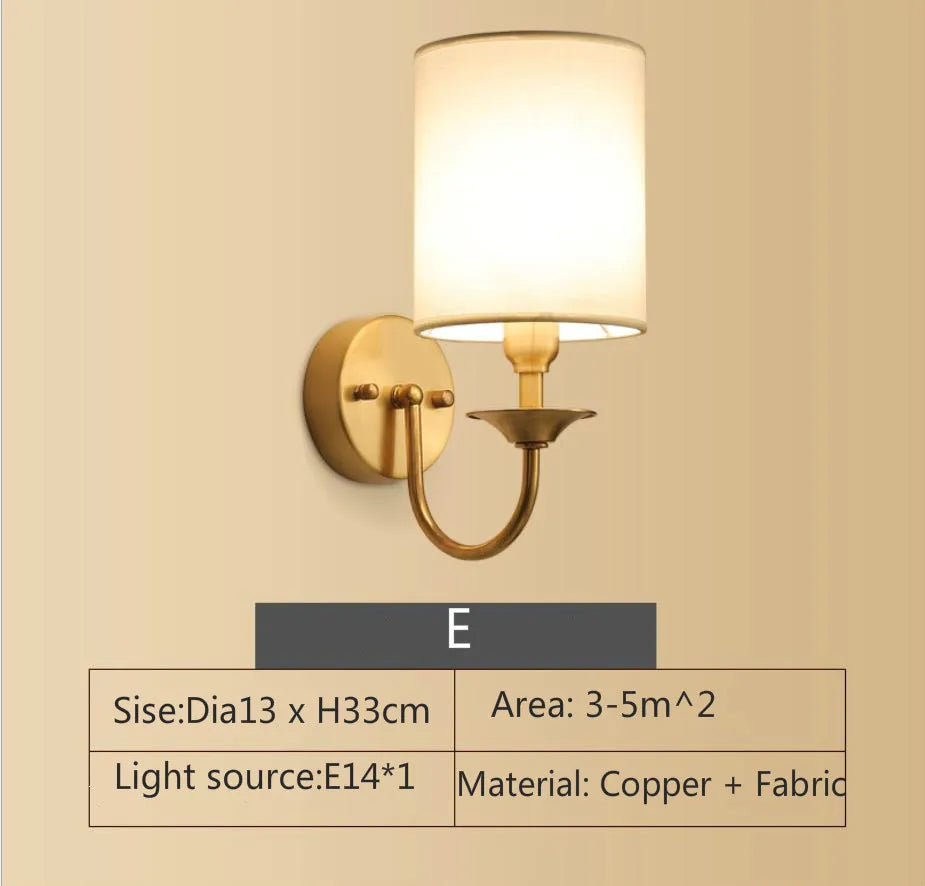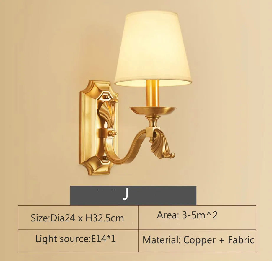 Eleanor - Lampe murale américaine entièrement en cuivre Lampe de chevet pour chambre à coucher Éclairage européen Moderne Simple Salon Couloir créatif