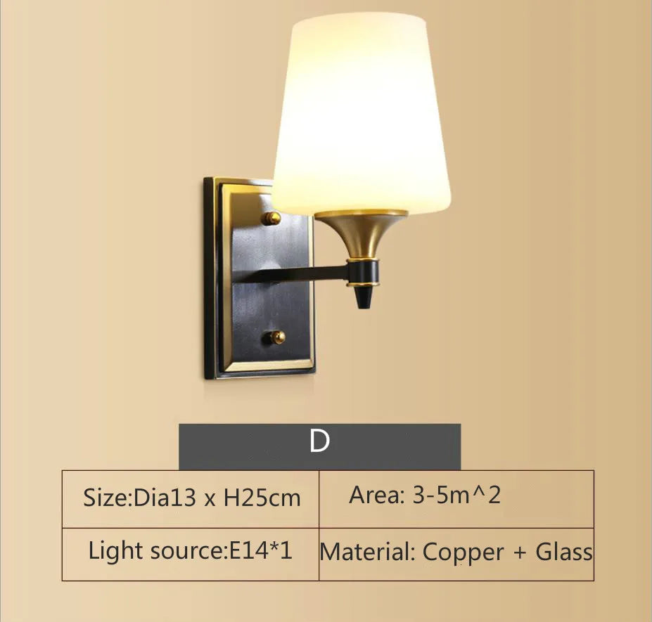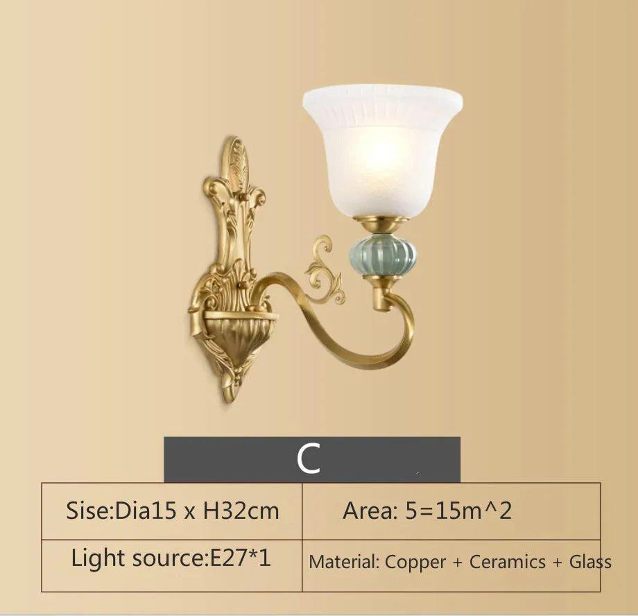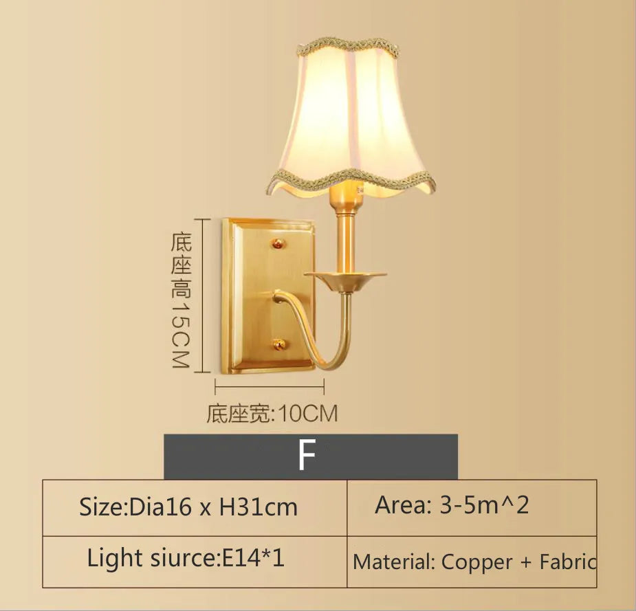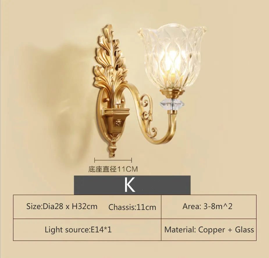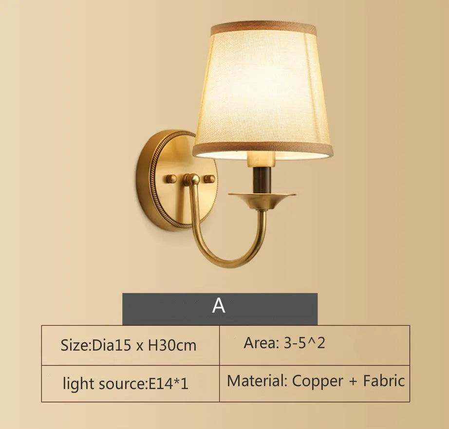 Eleanor - Lampe murale américaine entièrement en cuivre Lampe de chevet pour chambre à coucher Éclairage européen Moderne Simple Salon Couloir créatif