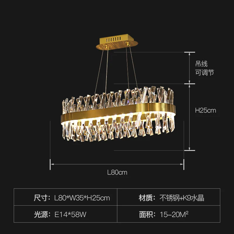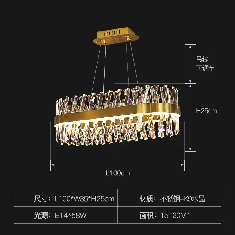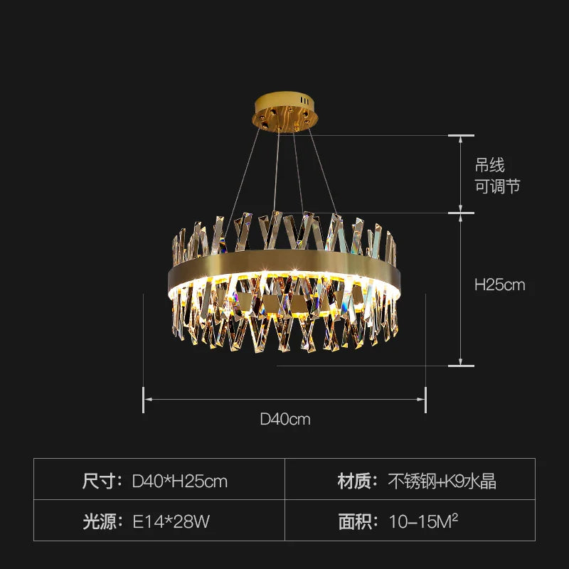 Embellissez vos salons et salles à manger avec le lustre LED en cristal de luxe, une pièce maîtresse qui ajoute élégance et opulence à votre décoration intérieure. Illuminez votre espace avec ce lustre élégant et fonctionnel, doté d'éléments en cristal K9 de haute qualité qui améliorent l'esthétique générale de votre maison.
