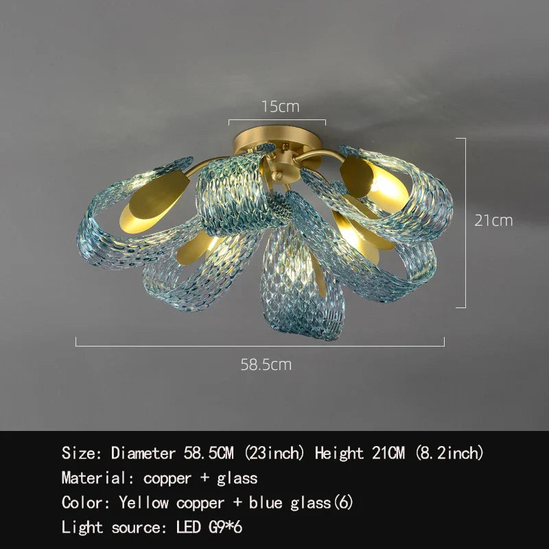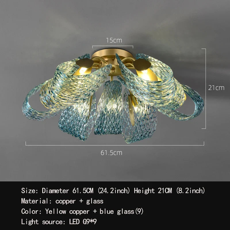 Plafonniers décoratifs modernes en verre - Design luxueux et léger en jaune, cuivre et bleu pour les chambres, les salons et les salles à manger