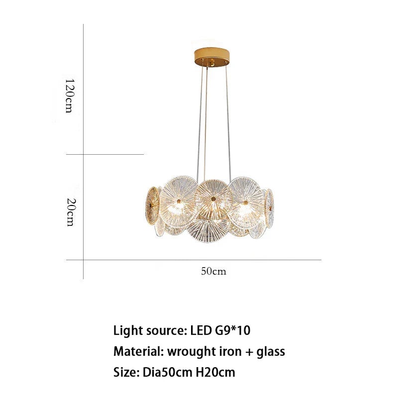 Plaque de verre de qualité : Fabriqué avec une plaque de verre de haute qualité, ce lustre diffuse magnifiquement la lumière, rehaussant ainsi le décor et l'ambiance générale.