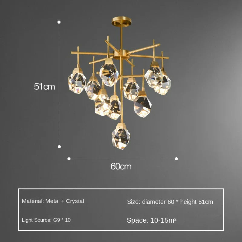 - Sublimez votre décoration : Que ce soit pour un usage quotidien ou pour créer une ambiance luxueuse, le lustre en cristal de luxe pour salon ajoute du caractère et du charme à vos espaces intérieurs, créant l'atmosphère parfaite dans vos pièces.