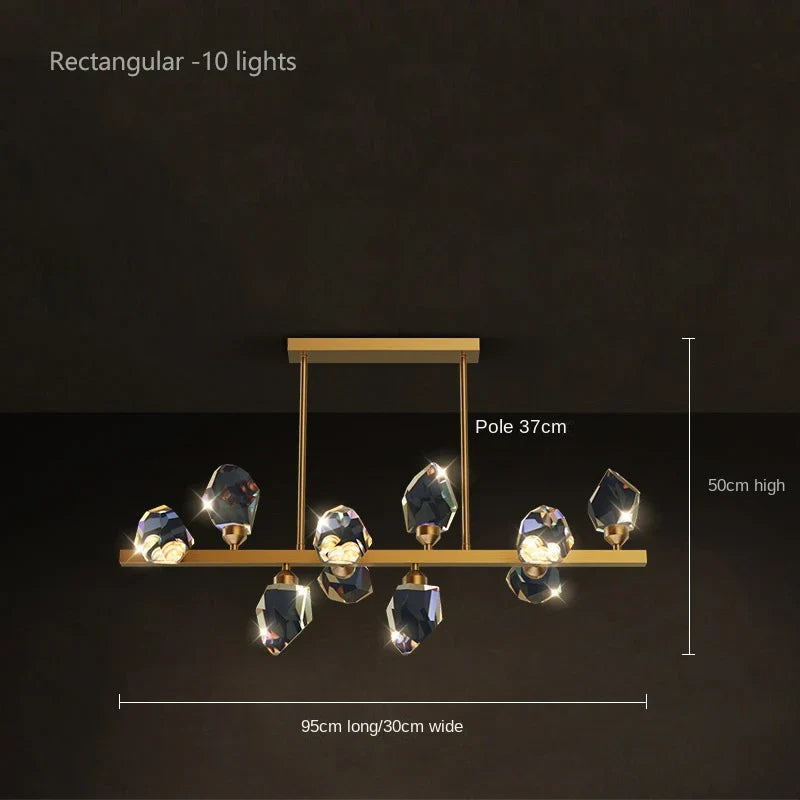 - Lustre de luxe moderne : Ce lustre incarne le luxe moderne grâce à son design épuré et ses ornements en cristal, idéal pour divers espaces intérieurs.