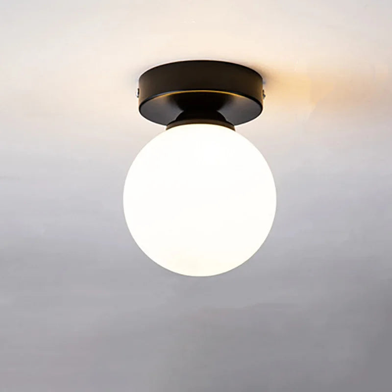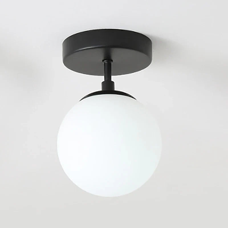 Plafonnier moderne en forme de boule de verre ronde - Plafonniers décoratifs montés en surface pour couloir et allée avec couvercle en verre dépoli laiteux (G9/E27)