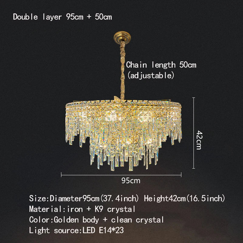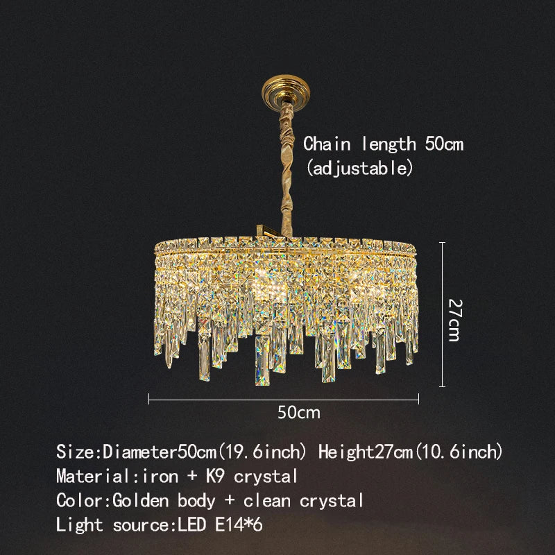 Sublimez vos espaces de vie grâce au charme envoûtant de ce lustre rond doré. Illuminez votre intérieur d'une élégance moderne et du charme intemporel du cristal, créant une atmosphère raffinée et chaleureuse qui laissera une impression durable.