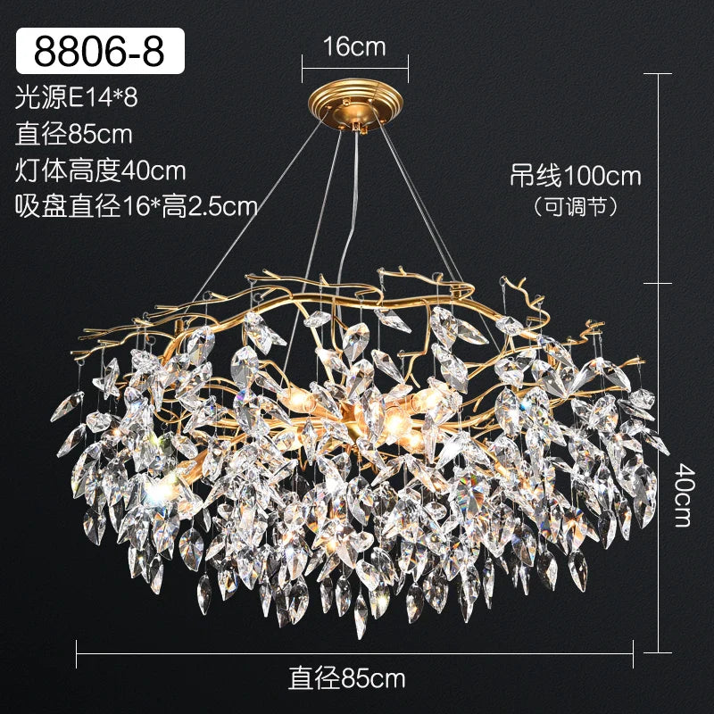 Lustre élégant en cristal K9 doré et long - Idéal pour l'éclairage de plafond de la cuisine, de la salle à manger, de la chambre et du salon, avec des lustres de style branche