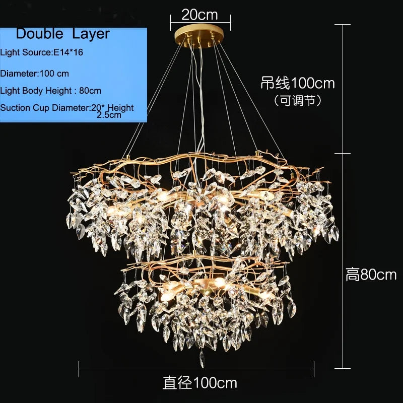 Sublimez votre intérieur avec ce magnifique lustre long en cristal K9 doré. Il allie avec élégance raffinement, design luxueux, style branches, ornements en cristal K9 et polyvalence pour créer une ambiance sophistiquée et lumineuse dans des pièces comme la cuisine, la salle à manger, la chambre ou le salon.