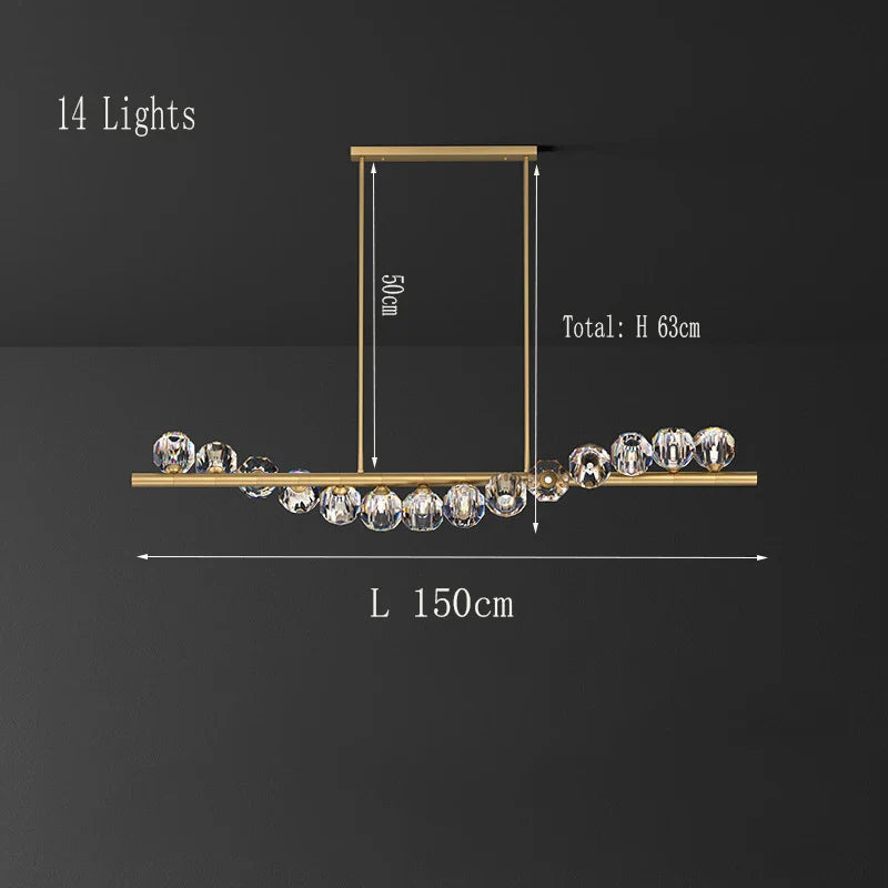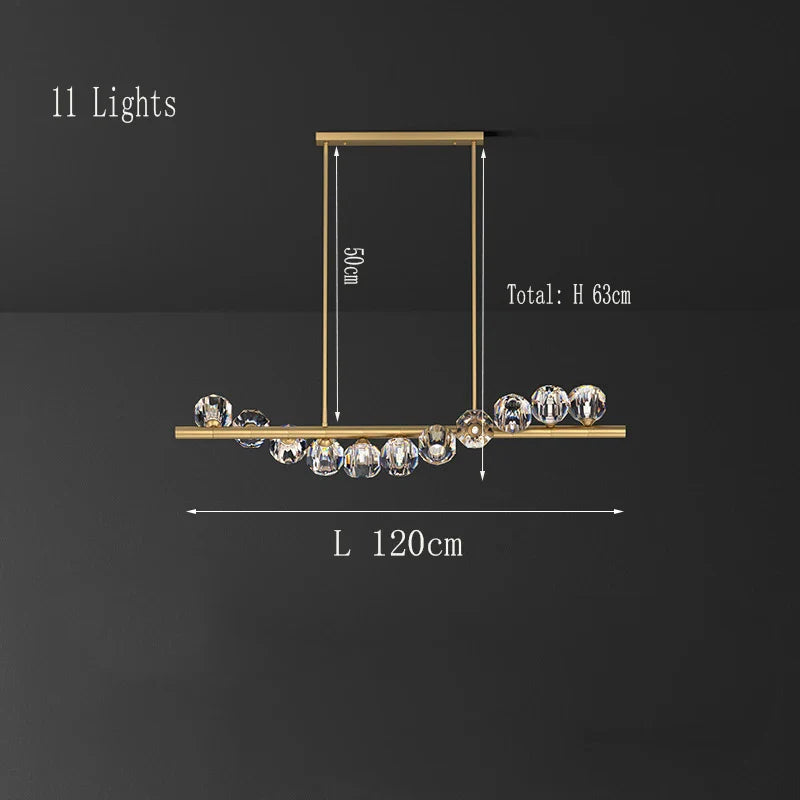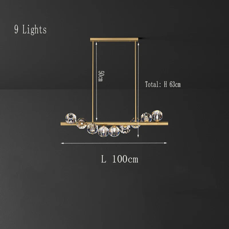 Lustre rectangulaire élégant en cuivre - Un luminaire en cristal luxueux pour les îlots de cuisine, les bars d'hôtel et les salons