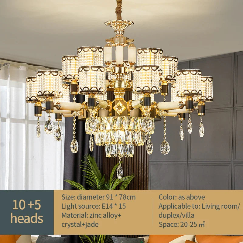 Élégance cristalline : Orné d'éléments en cristal, ce lustre exhale opulence et sophistication, ce qui en fait un ajout exceptionnel à toute pièce.