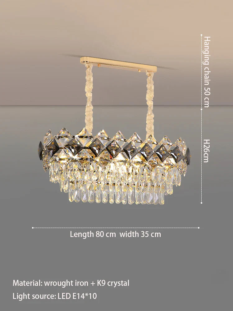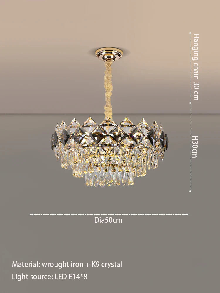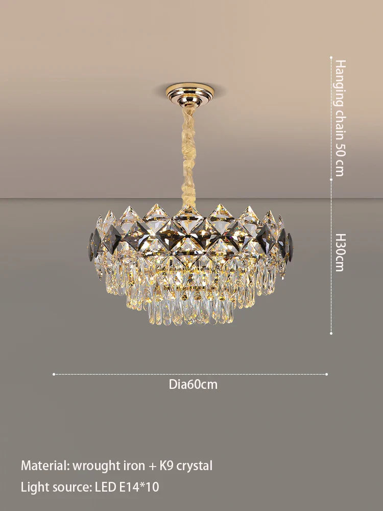 Élégance cristalline : Orné d'éléments en cristal, ce lustre exhale opulence et sophistication, ce qui en fait un point focal exceptionnel dans n'importe quelle pièce.