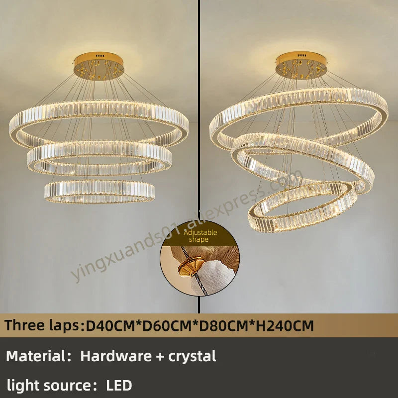 Sublimez votre intérieur avec les lustres en cristal Modern Luxury Crystal Chandeliers, symboles d'opulence et de design contemporain. Ce lustre, conçu avec un soin méticuleux, est idéal pour agrémenter vos salons, escaliers et halls d'entrée. Grâce à ses élégants cristaux et sa finition dorée éclatante, il illumine votre espace tout en y insufflant une sensation de luxe et de raffinement, créant ainsi un point focal remarquable dans votre décoration.
