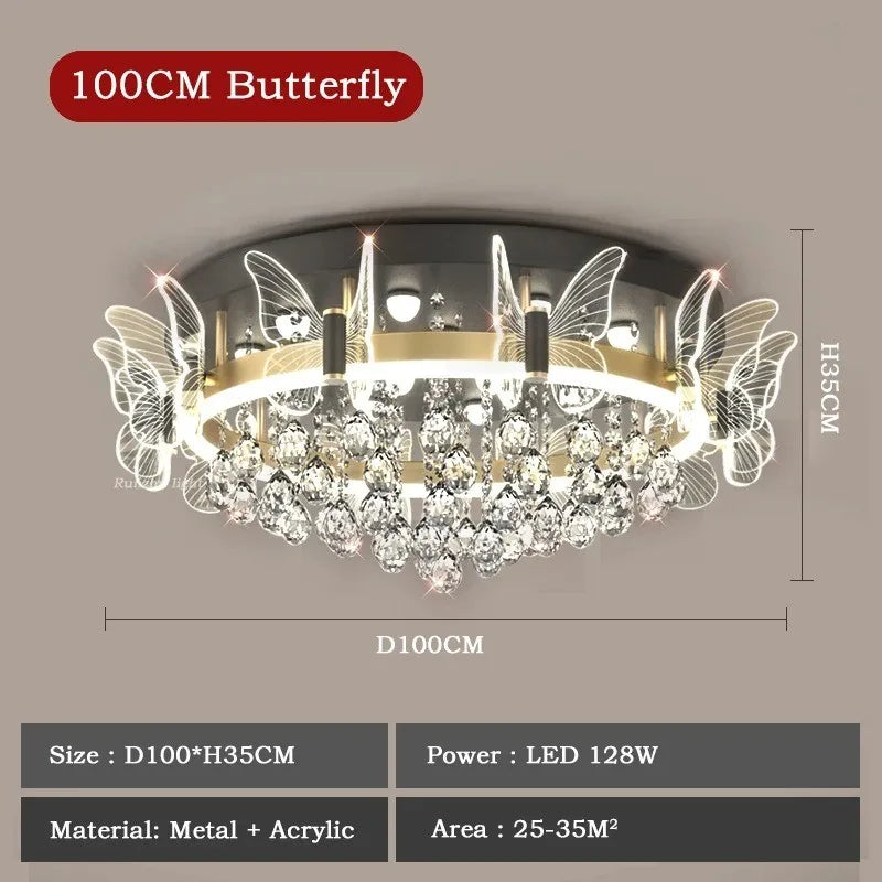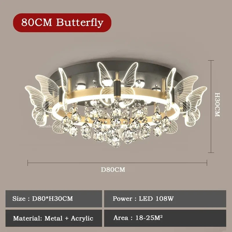 Plafonnier en cristal pour chambre d'enfant - Lustre papillon et ballon LED pour chambre de fille