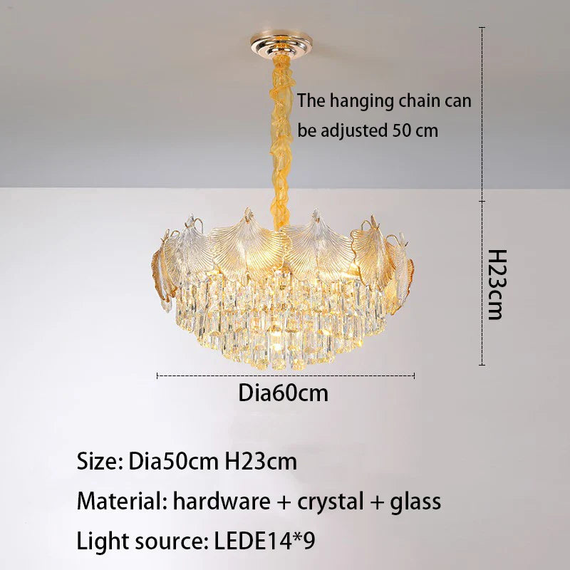 Élégance cristalline : Orné d'éléments en cristal, ce lustre exhale opulence et sophistication, créant un point focal captivant dans n'importe quelle pièce.