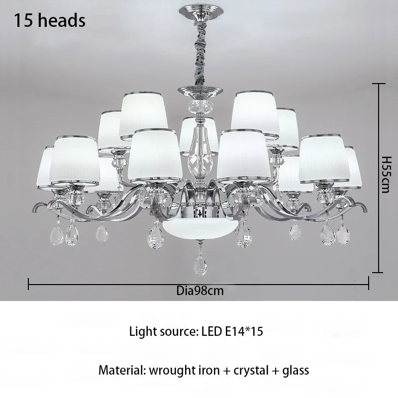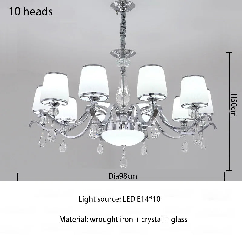 Sublimez l'ambiance de votre salon, salle à manger ou chambre avec notre somptueux lustre européen en chrome et cristal. Ce lustre allie harmonieusement le luxe européen à un design postmoderne épuré, créant un luminaire captivant qui apporte opulence et style à votre intérieur.