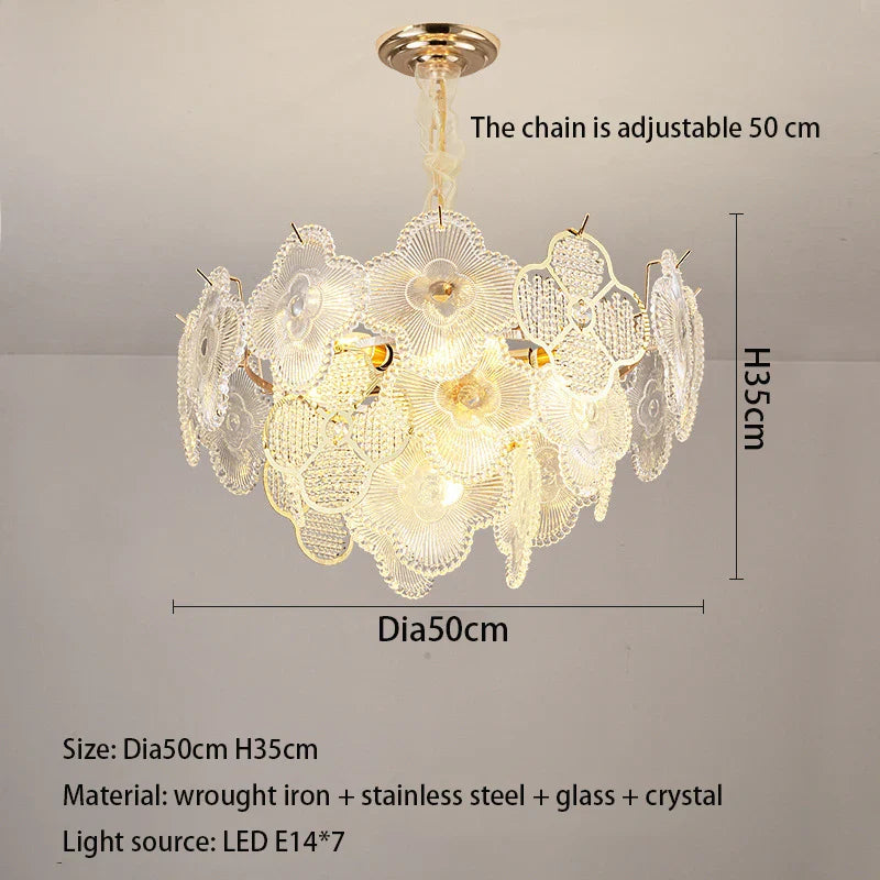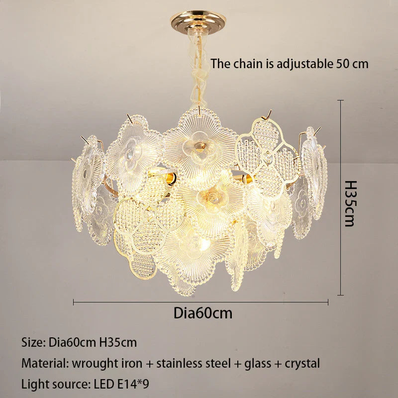 3. Verre cristal de haute qualité : Fabriqué avec des éléments en verre cristal taillés avec précision, ce lustre diffuse et réfracte magnifiquement la lumière, ajoutant une touche d’opulence et de luxe à votre décor.