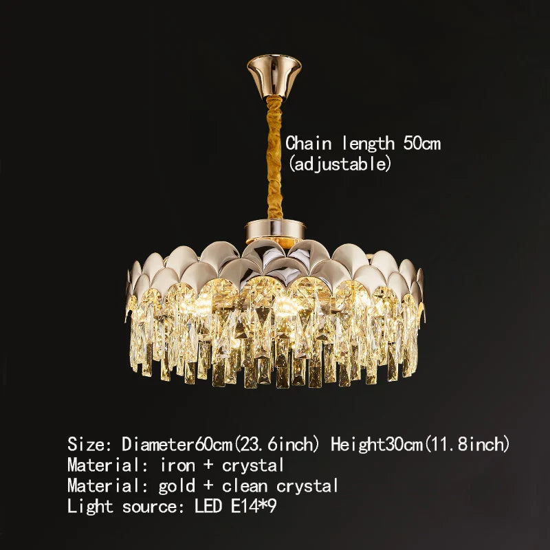 4. Application polyvalente : Idéal pour les chambres, les halls et les salles à manger, ce lustre élève l'atmosphère, créant une ambiance opulente.