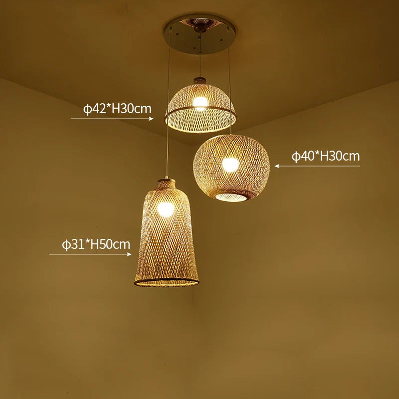 Lot de 3 suspensions modernes en rotin de bambou tricotées à la main - Tissage élégant pour votre maison