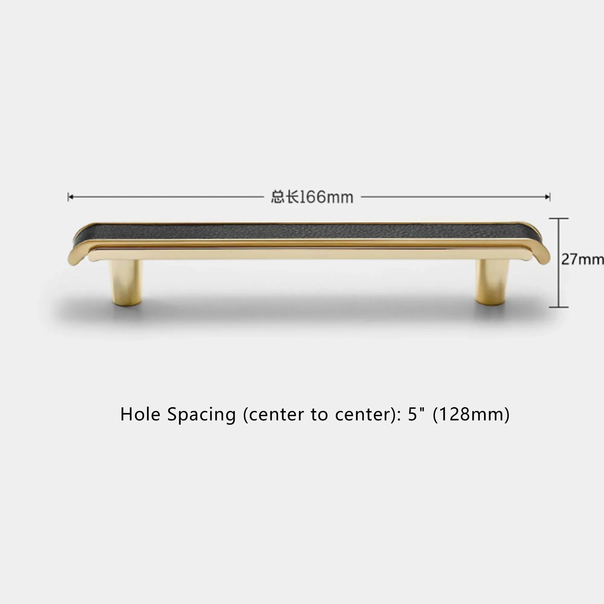 Poignée de meuble en cuir noir et alliage de zinc doré – Poignée de tiroir de luxe pour armoires et commodes (128 mm)
