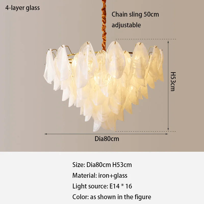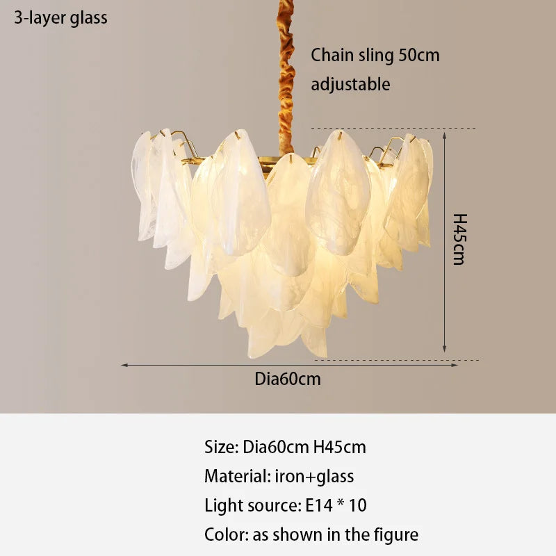 Lampe à suspension de restaurant de luxe et légère à la française - Élégance postmoderne avec un design rétro en plumes de verre pour les chambres et les salles à manger