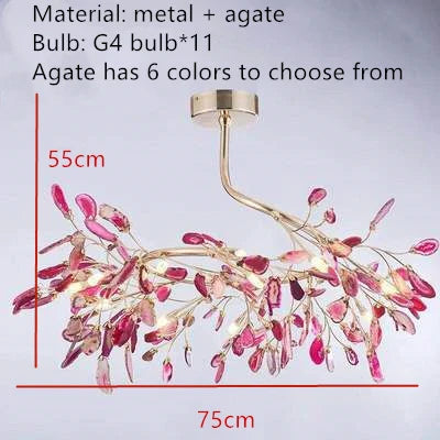 Sublimez votre intérieur avec nos lustres LED en agate colorée d'inspiration nordique. Conçus pour apporter une touche d'élégance artistique à votre salon, salle à manger et chambre, ces lustres arborent un design unique en agate colorée, évoquant des feuilles romantiques. Que vous recherchiez des luminaires captivants ou souhaitiez insuffler à votre décoration une touche artistique moderne, ces suspensions allient harmonieusement esthétique et fonctionnalité.