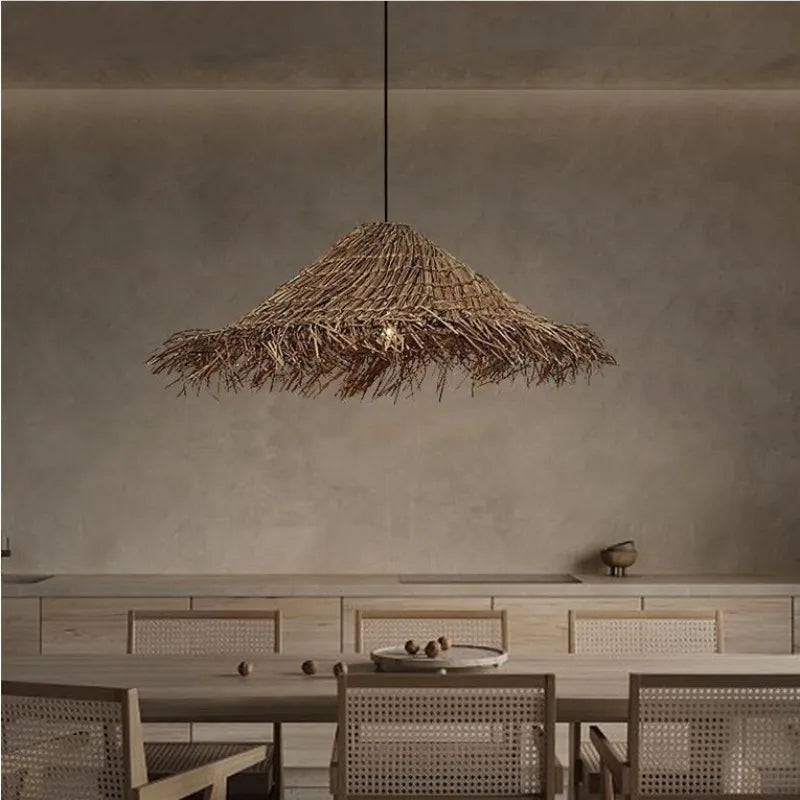 Lampes suspendues LED Wabi Sabi E27 - Lampe suspendue en rotin pour une salle à manger élégante