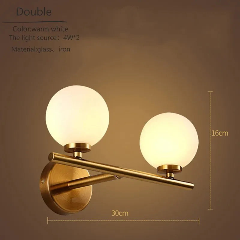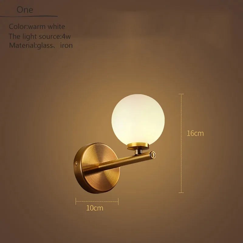 Applique murale nordique dorée avec abat-jour en verre - Éclairage élégant pour salle de bain, table de chevet, hôtel, couloir et couloir