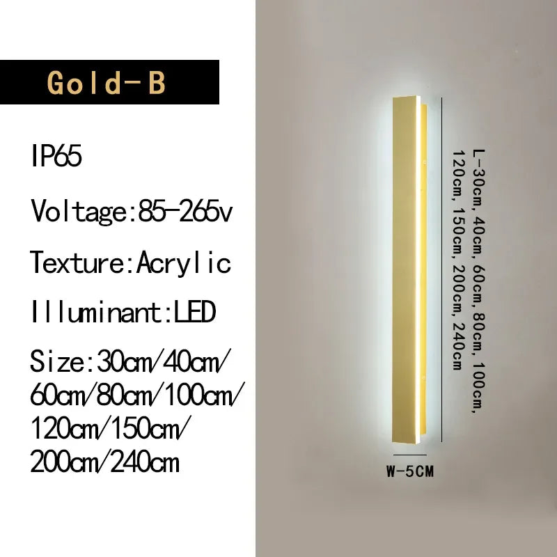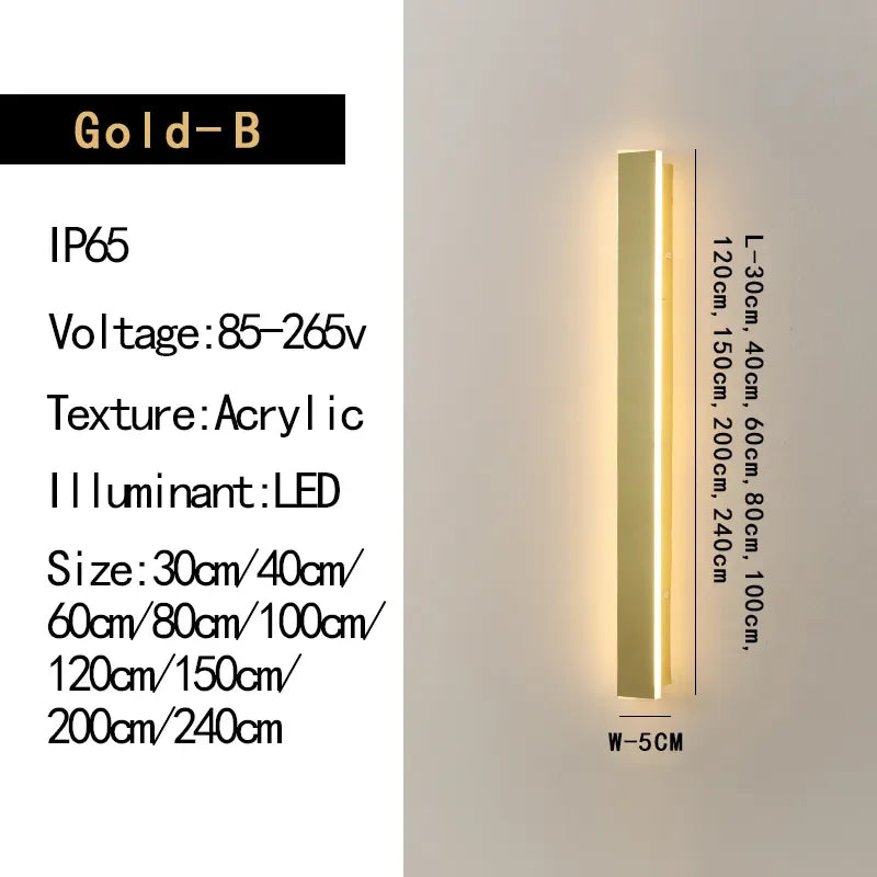 Applique murale longue à LED dorée élégante - Éclairage extérieur moderne pour villas de campagne, cours et balcons