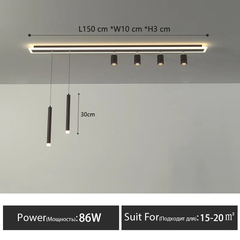 Plafonnier LED nordique - Design de bande moderne pour restaurants, bars, îlots de cuisine et salles à manger