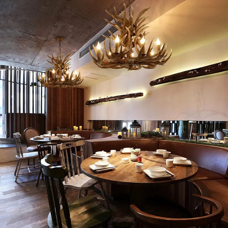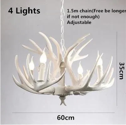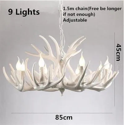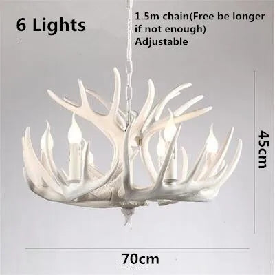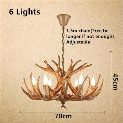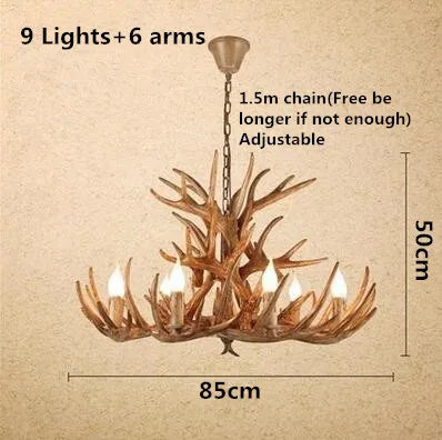 - Élégance rétro : Le design en résine en forme de corne de cerf dégage un charme rétro, faisant de ce lustre un ajout captivant à votre décoration.
