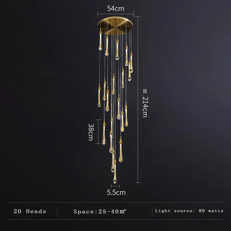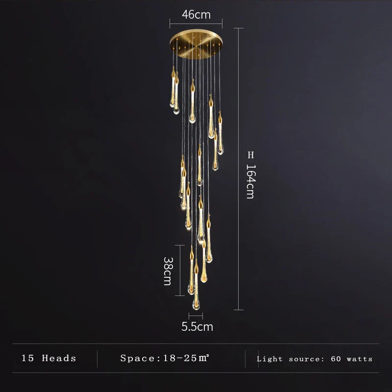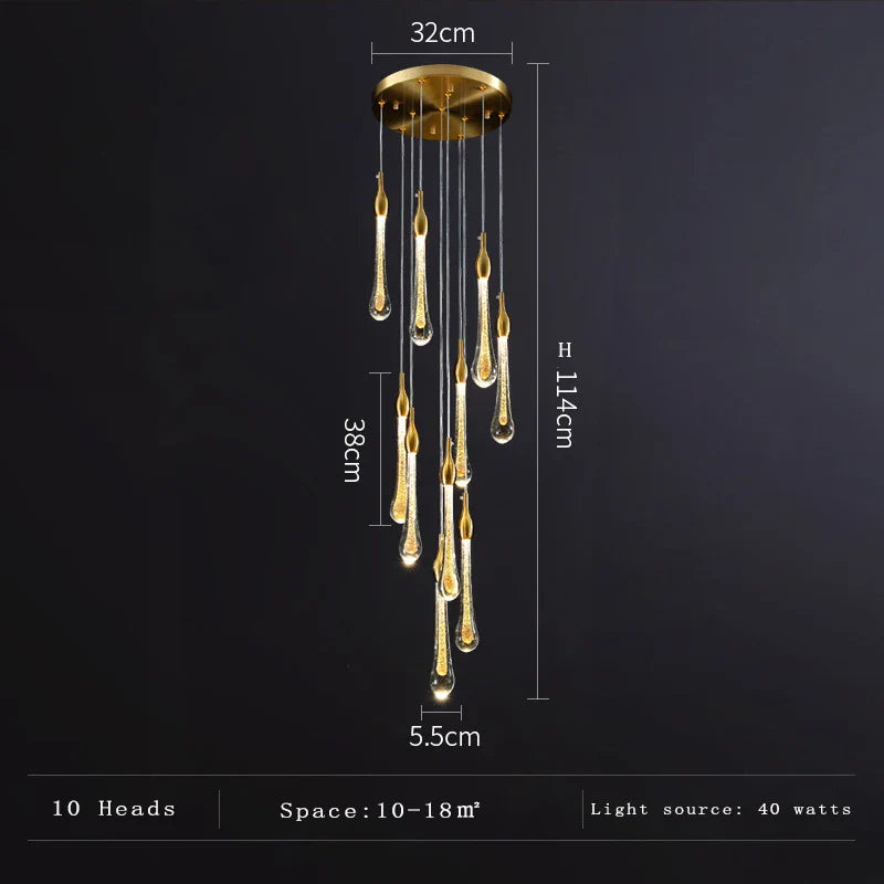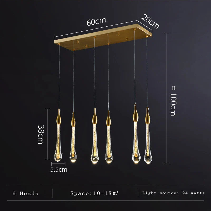 Décoration en forme de goutte d'eau : Orné d'éléments en forme de goutte d'eau, ce lustre crée un jeu d'ombre et de lumière envoûtant, favorisant une atmosphère chaleureuse et accueillante.