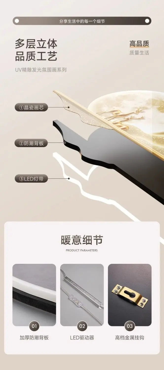 Apportez profondeur et sérénité à votre intérieur avec la lampe murale Dlight Decor, inspirée des montagnes. Conçue pour les murs derrière un canapé, les salles à manger ou les coins tranquilles, cette fresque lumineuse haut de gamme allie art visuel et éclairage LED d'ambiance. Le panneau en plexiglas capture la texture d'un paysage de montagne moderne tout en diffusant une lumière chaude et uniforme sur le mur. Grâce à sa télécommande et à son allure sculpturale, Dlight Decor sublime les espaces du quotidien par une sérénité artistique et des détails lumineux.