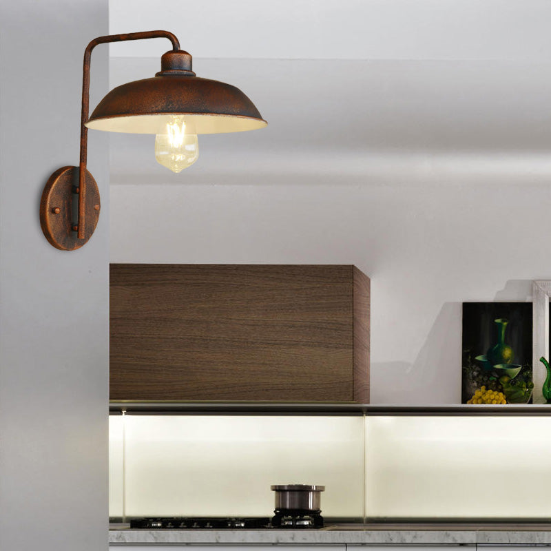 Applique murale de style grange Skylar - Noir/rouille métallique avec bras courbé
