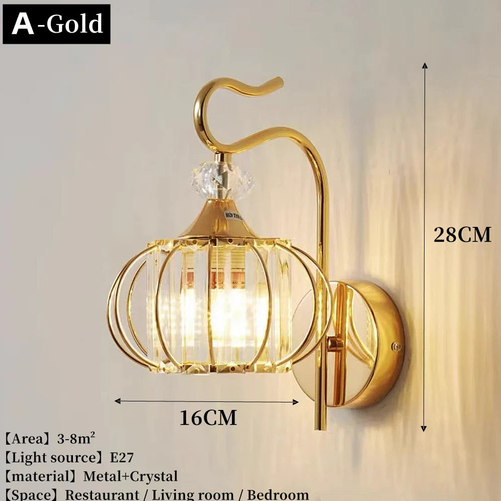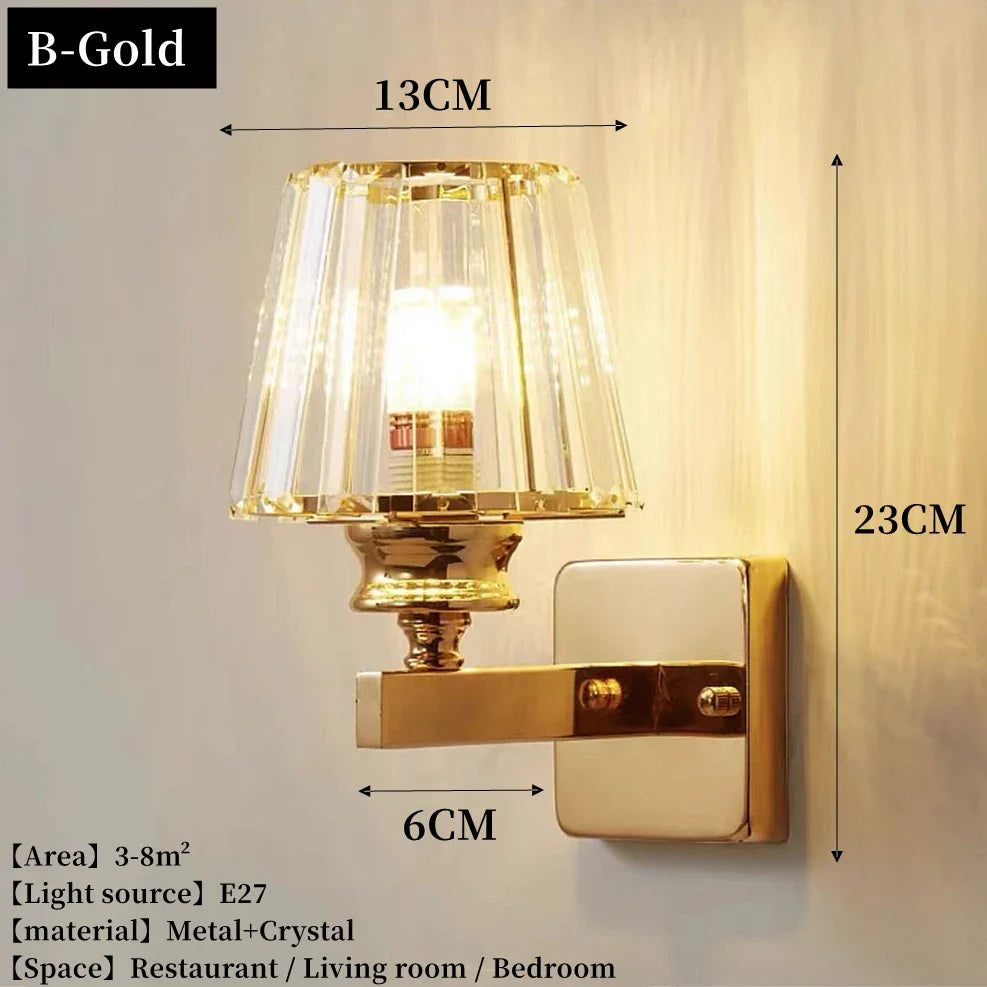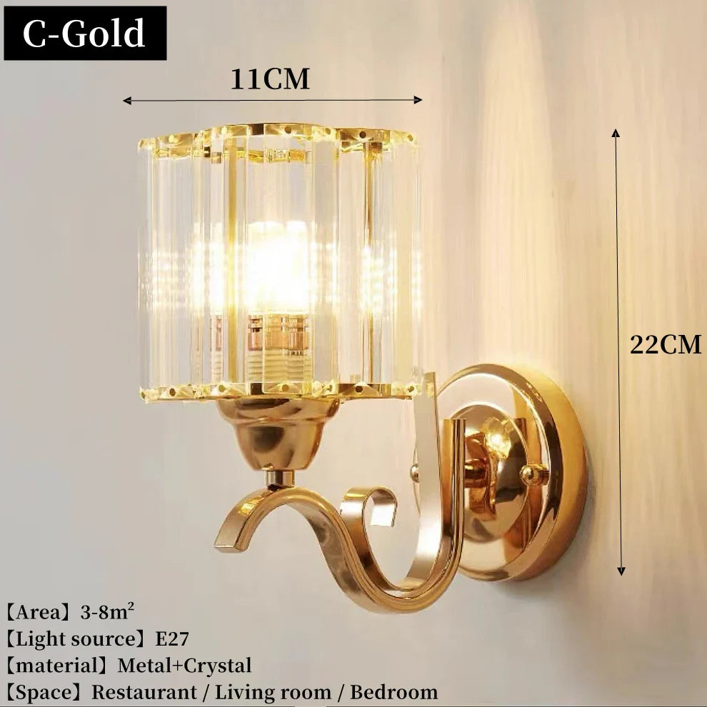 Applique murale moderne de luxe en or - Applique en cristal créative nordique pour salon, couloir, table de chevet et décoration intérieure avec applique murale LED en métal