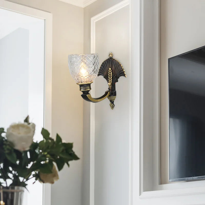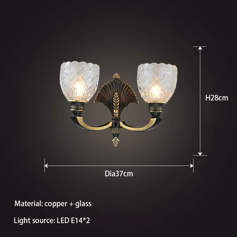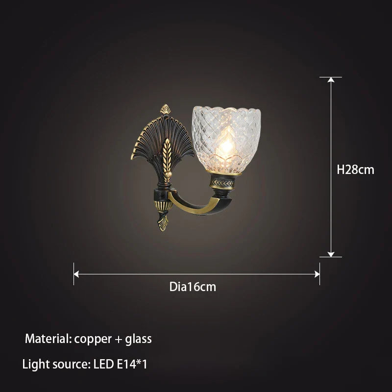 Oliver - Lampe murale américaine rétro classique entièrement en verre et cuivre, lampe murale de luxe créative pour bureau, chambre à coucher, salon