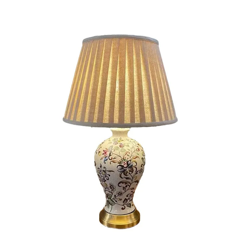 Lampadaire LED en céramique style rétro américain avec finition imprimée décorative