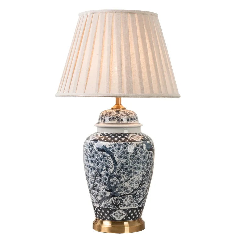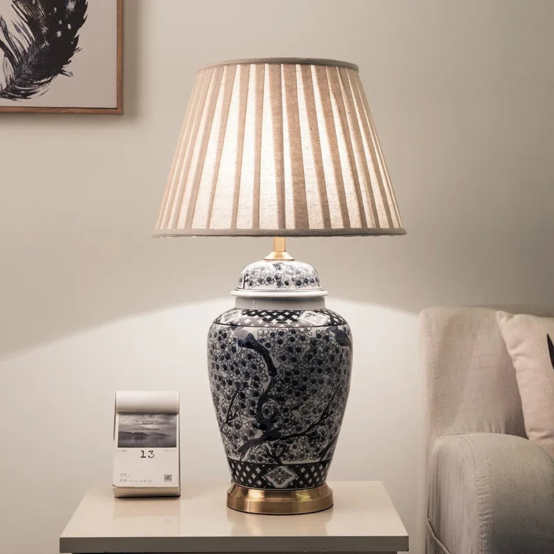 Lampadaire LED en céramique bleue et blanche pour chambre et salon