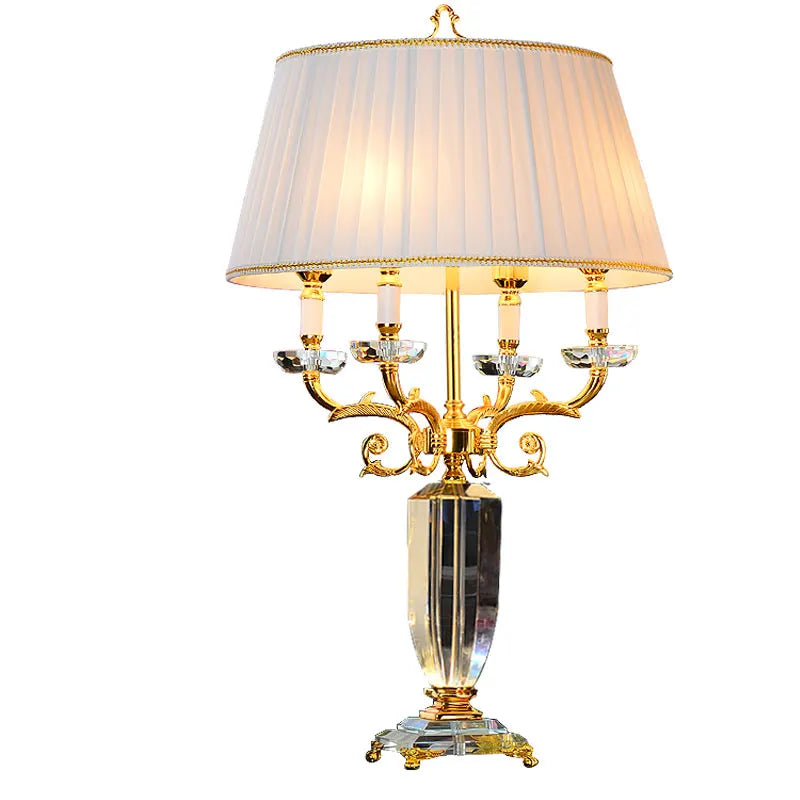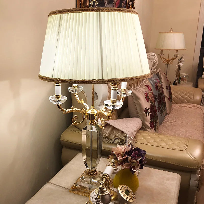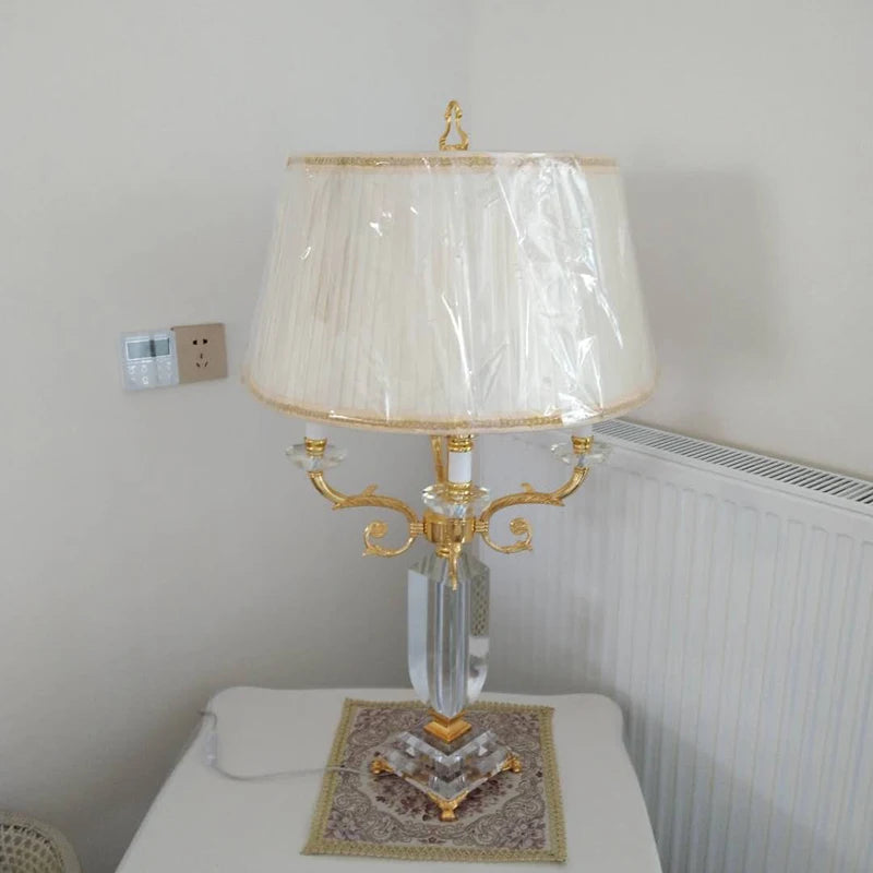 Lampe de table LED en cristal de luxe avec abat-jour en tissu pour chambre et salon