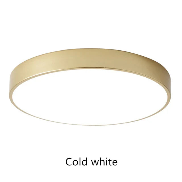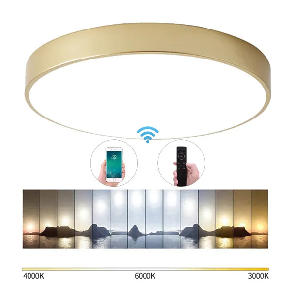 Plafonnier LED rond moderne doré - Montage en surface ultra-mince de 5 cm avec télécommande