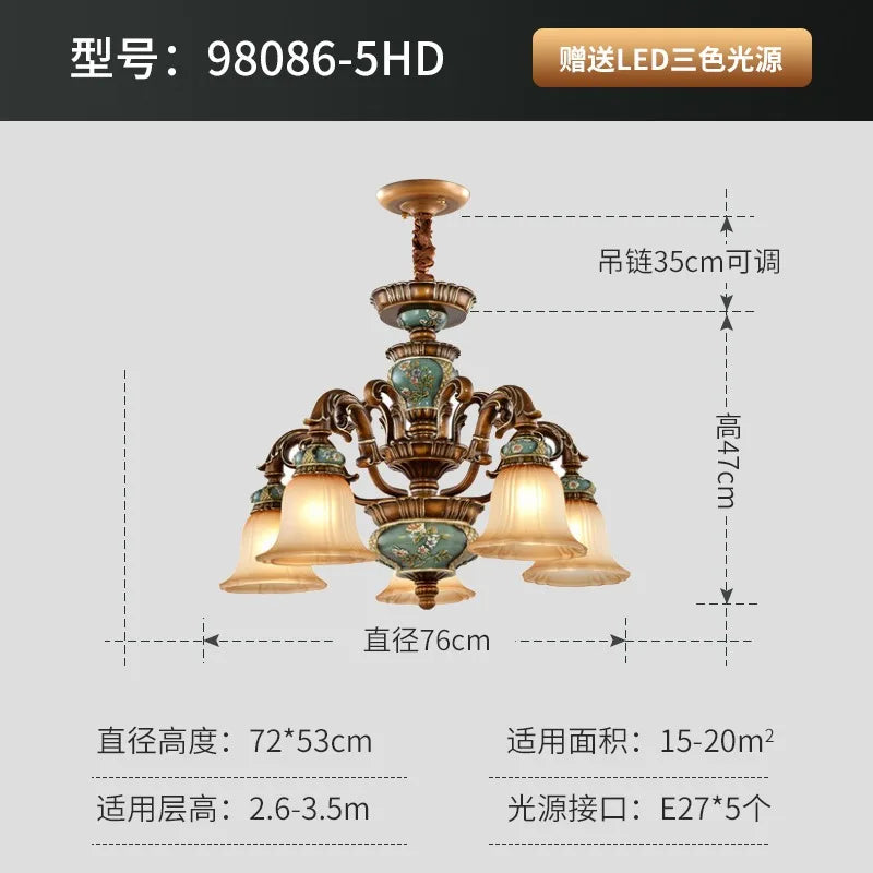 Nouveau lustre européen vintage en résine - Créez une atmosphère luxueuse dans votre villa, votre restaurant ou votre chambre