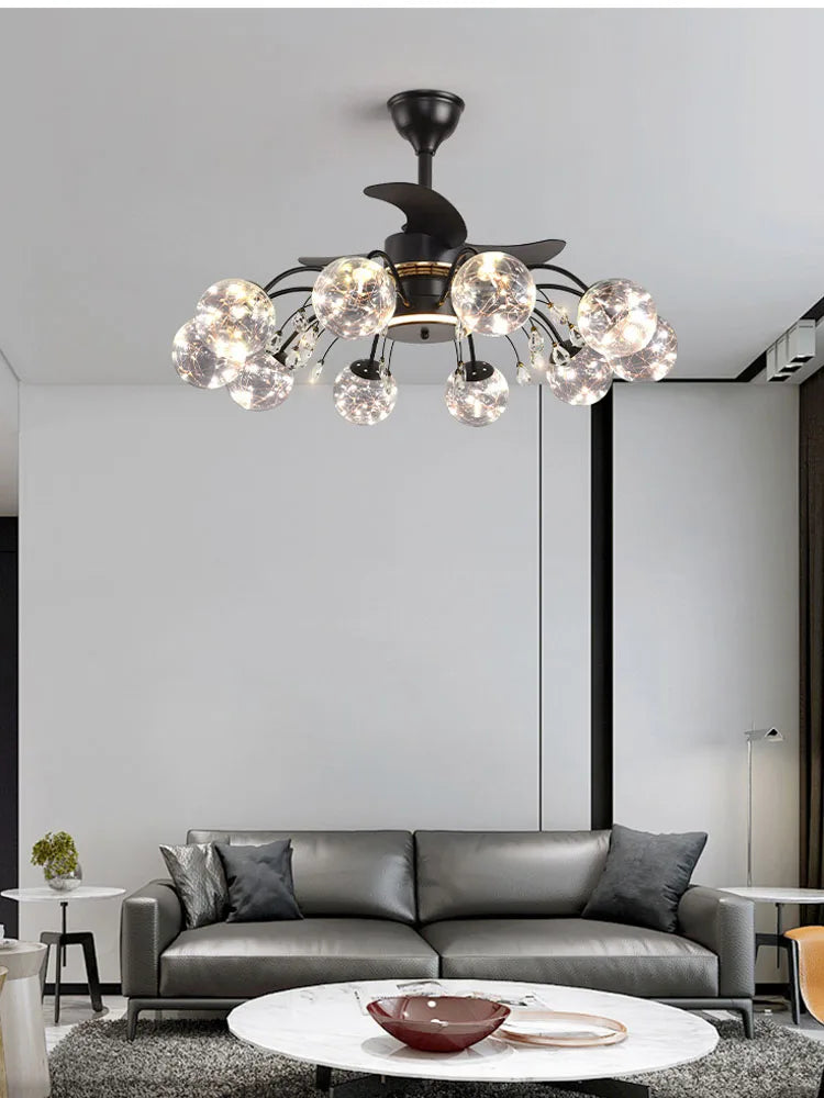 Rehaussez la décoration de votre maison avec cette lampe ventilateur de salon nordique, une fusion sophistiquée de l'élégance d'un lustre en cristal et de la praticité d'un ventilateur de plafond.
