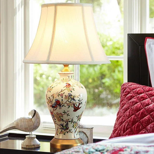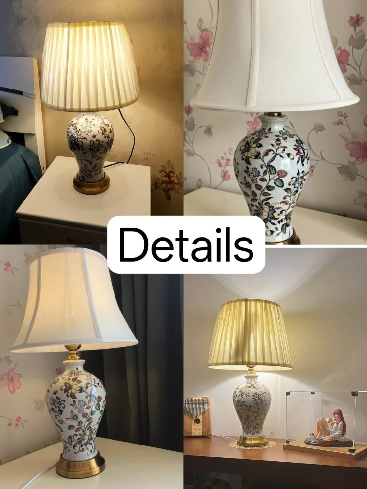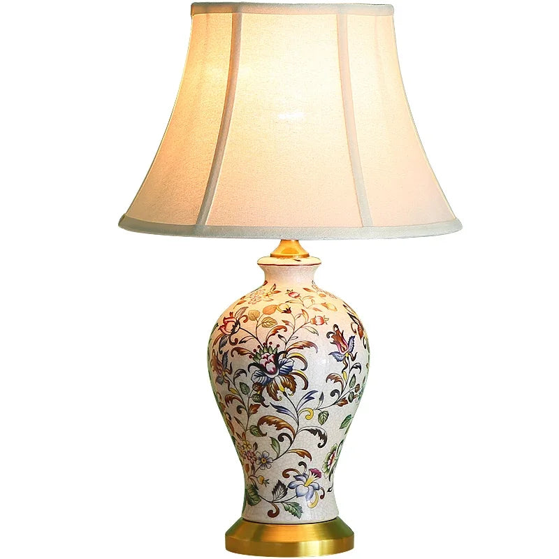 Ce lampadaire en céramique d'inspiration rétro présente un corps décoratif peint à la main et un abat-jour plissé en tissu, créant une ambiance chaleureuse et accueillante. Conçu pour apporter profondeur et douceur aux espaces intérieurs, il diffuse une lumière douce vers le bas, idéale pour une atmosphère apaisante. Sa finition artistique et ses proportions harmonieuses en font un luminaire décoratif charmant pour un bureau ou une chambre.