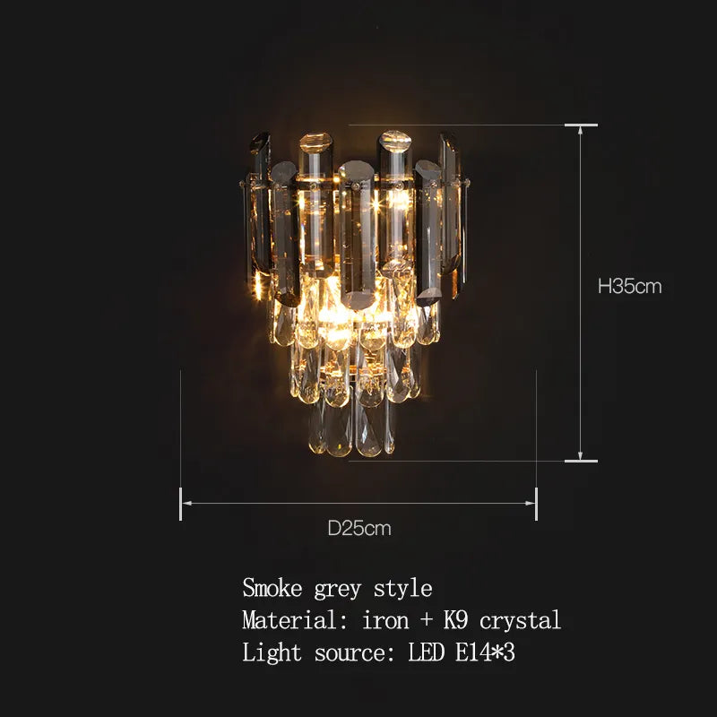 Découvrez les appliques murales Stella Crystal LED, symboles d'élégance moderne et d'éclairage décoratif qui sublimeront l'ambiance de votre chambre, table de chevet, salon, bureau, couloir, allée ou tout autre espace où vous souhaitez apporter une touche de sophistication. Ces appliques raffinées se déclinent en trois styles élégants : cristal pur, cristal gris fumé et cristal pur + cristal gris fumé. Fabriquées à partir de matériaux de haute qualité, tels que le fer et le cristal K9, elles offrent un éclairage polyvalent grâce à leurs ampoules LED E14 (fournies).