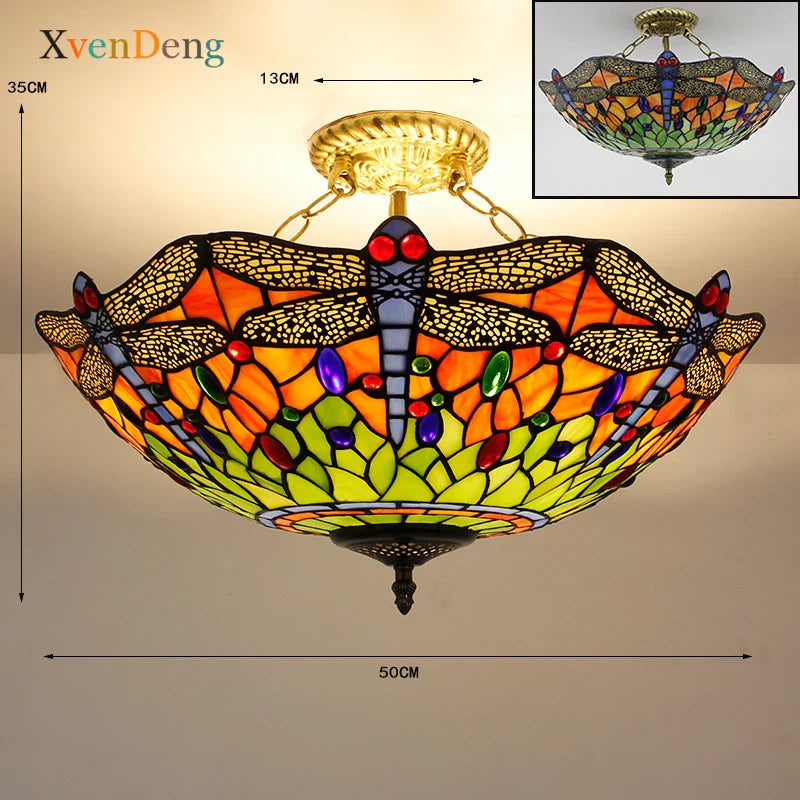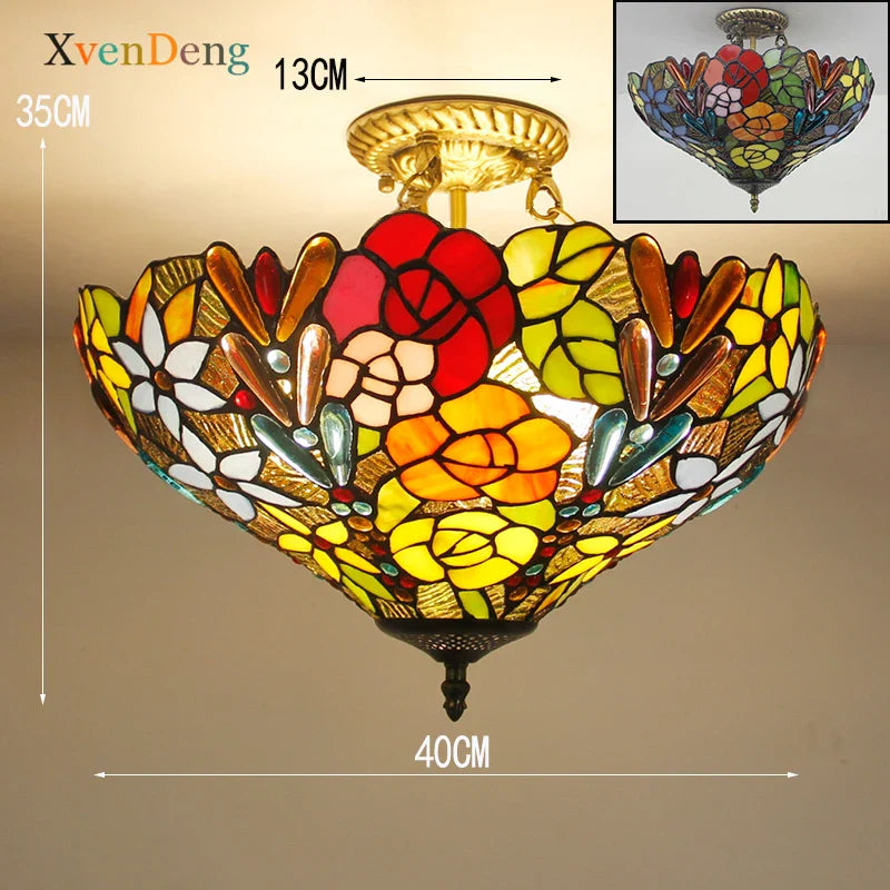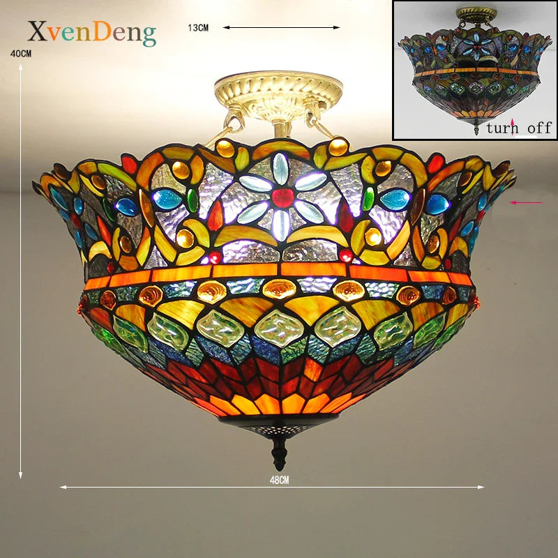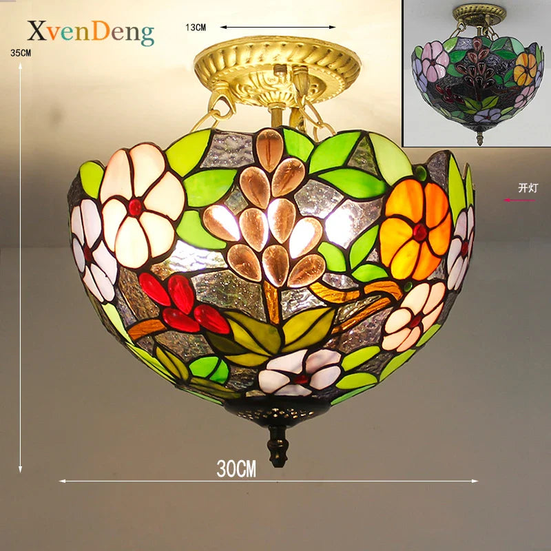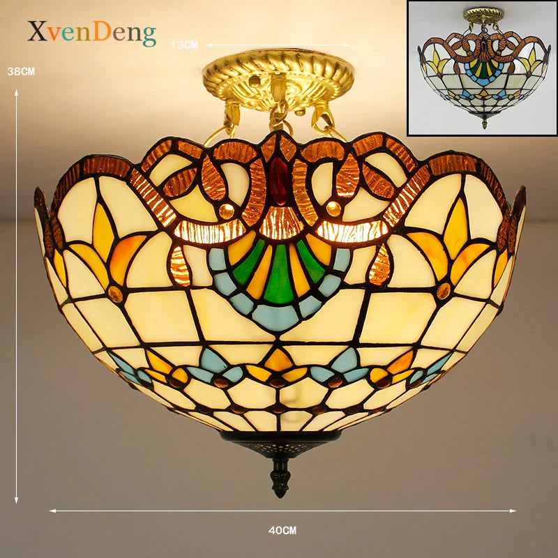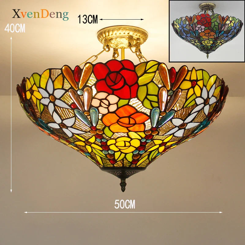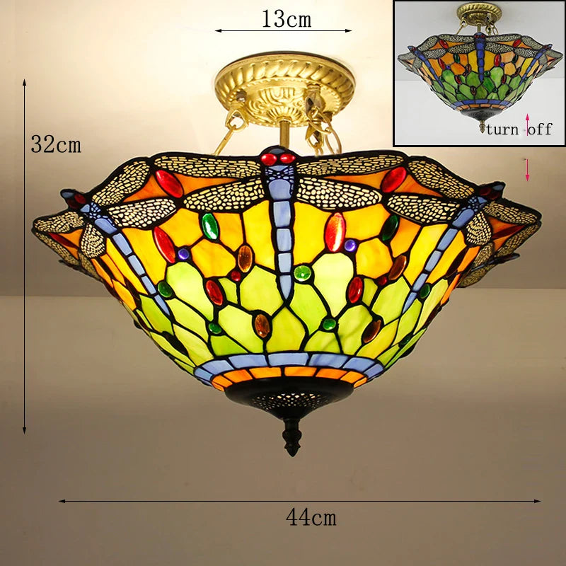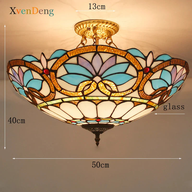 Plafonniers en verre teinté Tiffany de style méditerranéen vintage - Élégance pour les salons, les chambres, les cuisines et plus encore