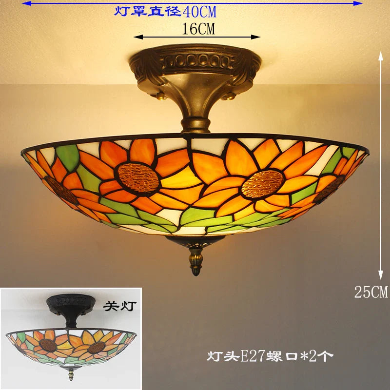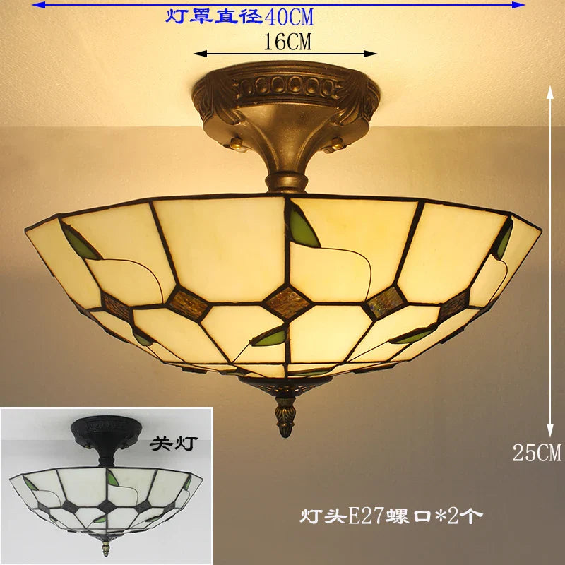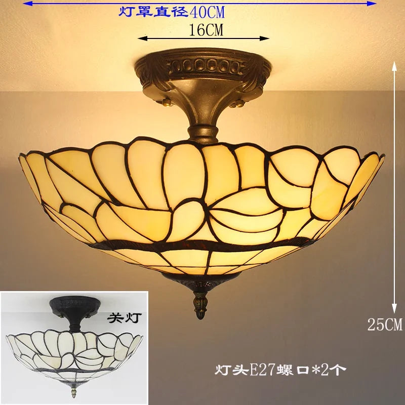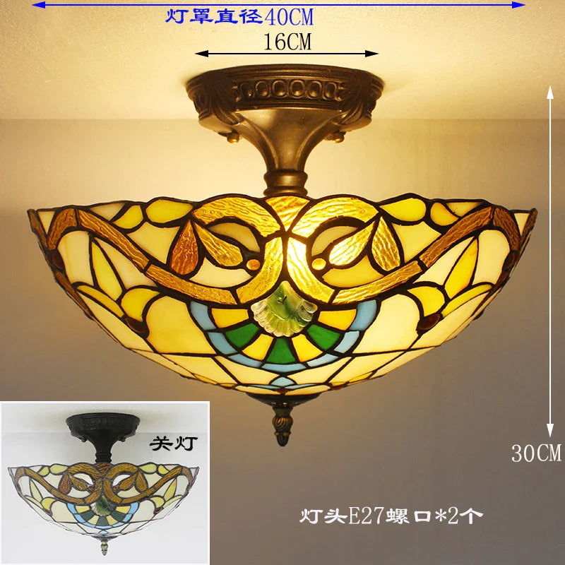 Plafonniers vintage en verre teinté Tiffany - Lampe suspendue baroque méditerranéenne pour salon, cuisine et chambre à coucher